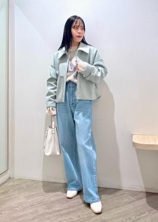 ショート丈で少しオーバーデザインですが、着用してみると太って見えることなく、ボトムを選ばないため、合わせやすいアウターでした。