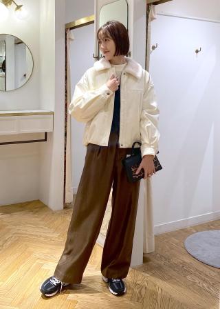 ブラックはワントーンでまとめるとカッコいい印象に。オフホワイトは柔らかなニットなど合わせ、甘さを加えた印象になります。