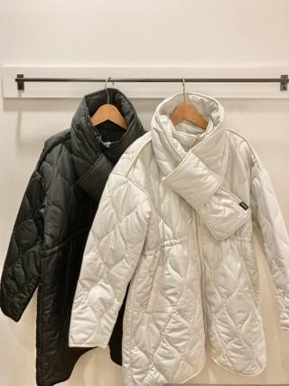 スナップボタンで取り外し可能なキルティングマフラー付きのブルゾンです。