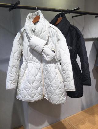取り外し可能なキルティングマフラーが付いています。軽くてしっかり暖かい光吸収発熱機能付きです。