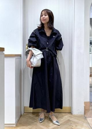 裾を絞った状態でジップを中心だけ止めるスタイルがきれいなシルエットになるのでおすすめです。