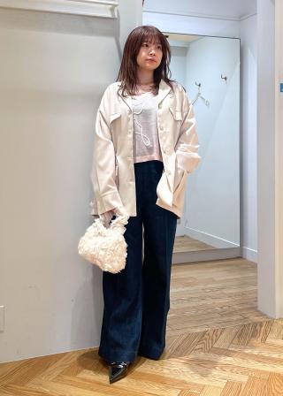 ルーズなシルエットなので、ボトムスにIラインのスカートやフレアパンツなどメリハリのあるボトムスを合わせてスタイリングして頂くのがおすすめです。