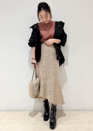 足元はブーツ合わせが季節感が出ておすすめです。