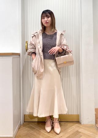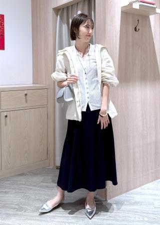 ワンピースと合わせてフェミニンさをプラスするのもおすすめ。今年はミニバルーンスカートもVISのおすすめです。