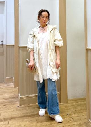 152cmでFサイズ着用し、着丈はお尻がすっぽり隠れる長め丈。パッと羽織れて軽くてとっても楽ちんアウター◎薄手なので、暖かくなってからもまだまだ使えるアイテムです!