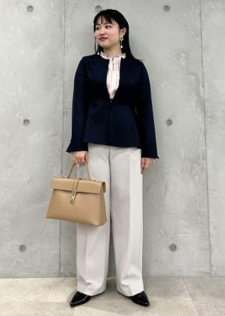 インナーにボウタイブラウスやフリルブラウスを合わせて華やかさをプラスするのも◎