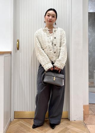 着回しとして、重厚感のある素材であるからこそデニムなどに合わせてスタイリングするのも今年らしくおすすめです。