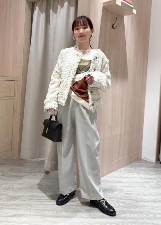 着回しとして、重厚感のある素材であるからこそデニムなどに合わせてスタイリングするのも今年らしくおすすめです。