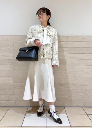 キレイ目のパンツやスカートは清潔感あるスタイリングに。