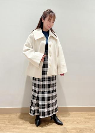 大きい襟で小顔効果抜群のコートです。