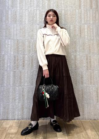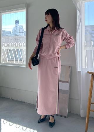 同素材の「配色ラインIラインスカート」とセットアップで着用できます。