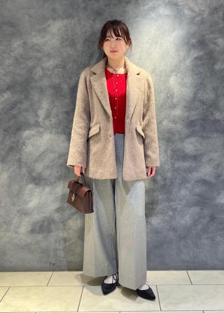 インナーには、ピンクやレッドで華やぎカラーニット(ハイゲージタイプ)がおススメ!