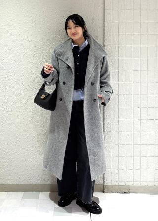 インナーに肉厚なニットを着用しても、裏地が付いているのでニットやスウェット等の腕通りも良く、大変軽い素材で着やすかったです。しっかり長さが欲しい方はMサイズがお勧め。とても軽くて暖かいウール混のロングコートです。