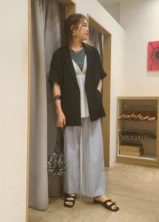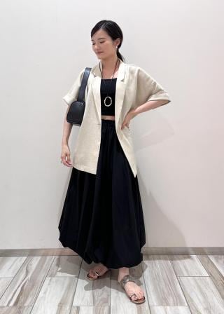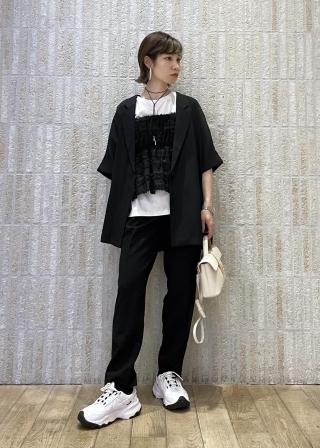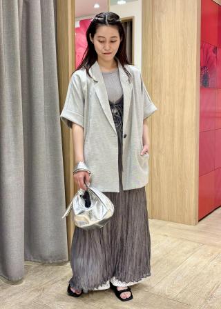 セットアップでの着用はもちろん、デニムなどカジュアルボトムスと合わせるのもおすすめ!