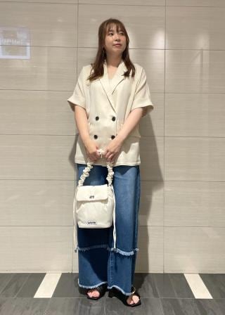 ボトムにはデニムやIラインスカートなど幅広いアイテムと相性◎