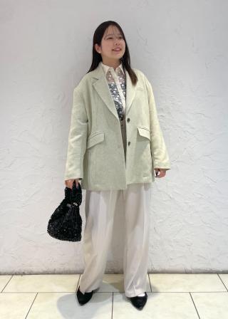 低身長の方にはかなり大きいのですが、羽織るだけで印象がグッと今っぽくなるアイテムです!