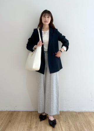 ジャケットは通販は生地感とか心配だったのですが、薄手でシワになら無さそうな生地で気に入りました。色味も落ち着いていていい感じです。