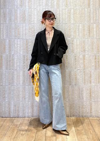 ショート丈なので、ロングスカートやワイドパンツなど長さがあるボトム合わせはバランスよく決まります。