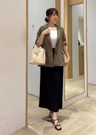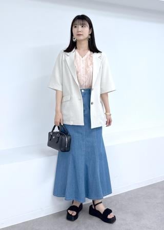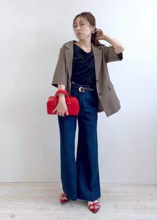 ジャケットインとしては、カジュアルなTシャツからキレイめブラウスまで、オフィスカジュアルはもちろん、オンオフ関係なく、スタイリングが自由自在です。