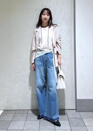 ワイドボトムやIラインスカート合わせで通勤スタイルはもちろんカジュアルな着こなしとして、Tシャツ&デニムでカチッとしすぎず、きちんと見えも叶えてくれるコーデが完成します。