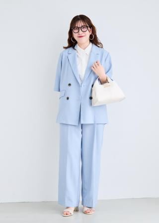 美easyリネンライクハーフスリーブダブルジャケット/イージーケア・接触冷感・セットアップ対応