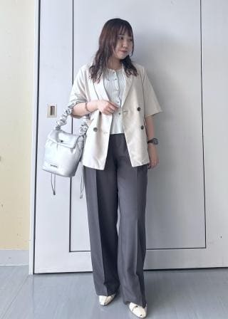 ワイドボトムやIラインスカート合わせで通勤スタイルはもちろんカジュアルな着こなしとして、Tシャツ&デニムでカチッとしすぎず、きちんと見えも叶えてくれるコーデが完成します。