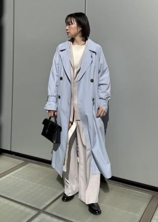 着丈が長いのでパンツ、スカートとどんなアイテムもはまりやすい万能トレンチコートです。