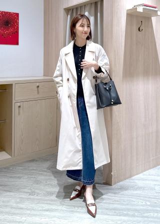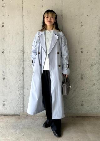 着丈が長いのでパンツ、スカートとどんなアイテムもはまりやすい万能トレンチコートです。
