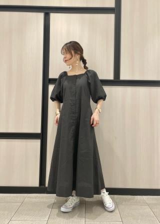 トレンドのボリューム袖を取り入れつつ、抜け感を出すためスクエアネックで首元をすっきりと仕上げています。