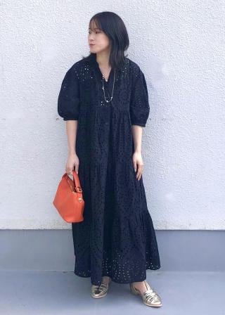 レース素材のワンピースはとても存在感があり、ベーシックカラーでもシンプルになりすぎず、おススメです。
