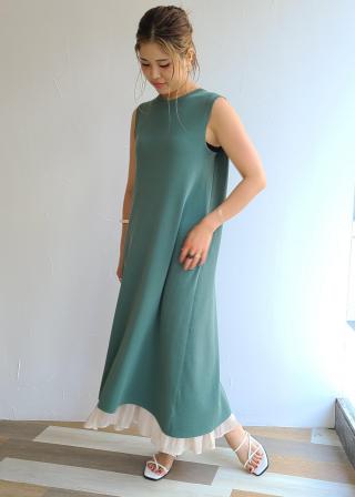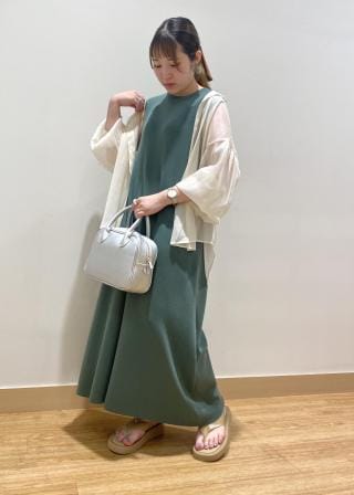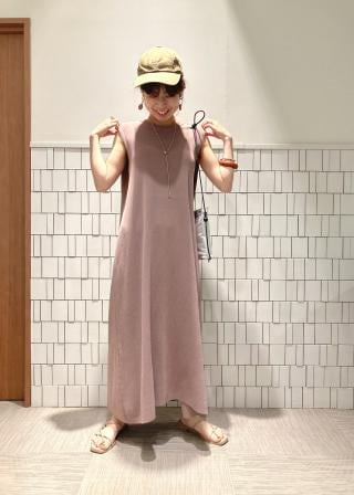 体のラインを拾いにくく、透けにくい編み地にしているので、ワンピース一枚でさらっと着ていただけます。