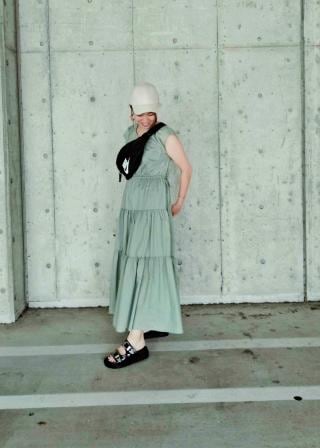 バケットハットや雑材のバックと合わせたオフスタイルな印象で着ていただきたいワンピースです。