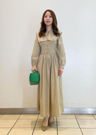 ビッグカラーのワンピースを主役に一枚でコーディネートしました♪