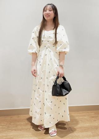 鎖骨がきれいに見えるスクエアネックと華奢見えするボリュームスリーブが大人可愛いワンピース♡オリジナルの小花柄刺繍も女心くすぐります…!ややハリのある綿素材でさらっとした肌触りです。