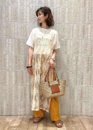サイドに長めのスリットが入っているので、ワイドパンツやデニムなども合わせやすいです。