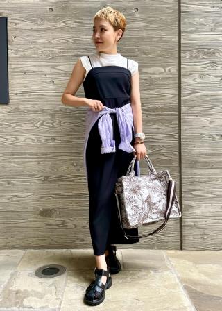 長さは肩紐のアジャスターで調節ができます。スリット部分も後ろにあるので、足の肌見えも気になりにくかったです。