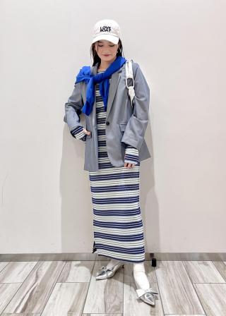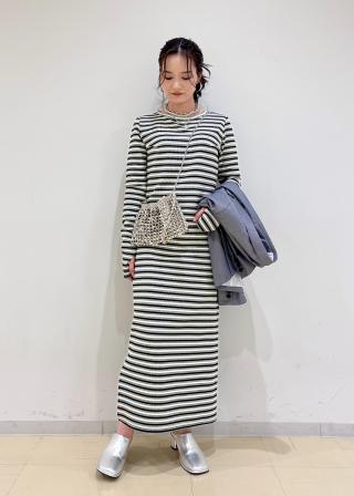 タイトで女性らしいシルエットのカットワンピースなので、羽織りにカジュアルなマウンテンパーカーなどをスタイリングしていただくのがおすすめです!
