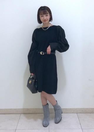 ・ミニ丈ワンピですが程よいフレア感で大人っぽい印象を演出。