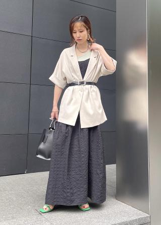トレンドのぽこぽことした表面変化のある生地を使用したキャミワンピースです。