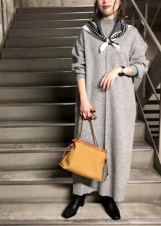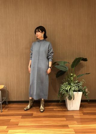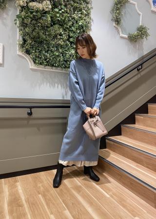 パンツやロングスカートなどに合わせた、トレンドのレイヤードスタイルを楽しめるニットワンピース。
