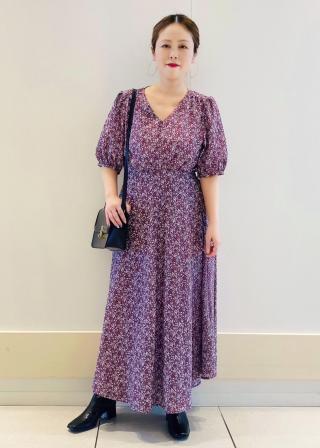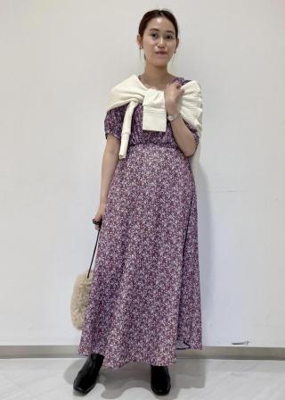 小花柄がポイントのプリントワンピース。