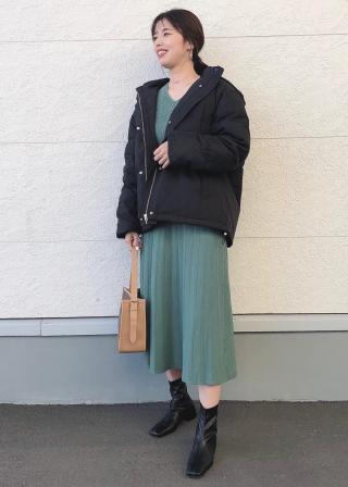 一枚で決まるアイテムなので、ショートブーツで合わせてコーディネートするのをおすすめします。