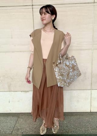 シアー素材のスカートがかわいいです。ニットも薄くてサラッとしてるので夏でも着れそう。