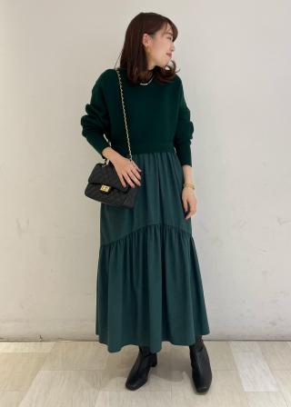 ニット部分とスカート部分は、ブラックとグリーンは同系色でホワイトのみベージュのスカートでニュアンスを出しました。