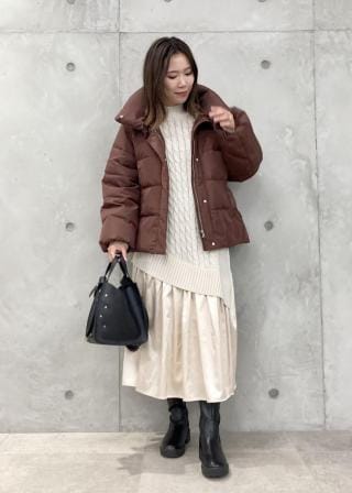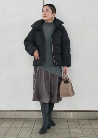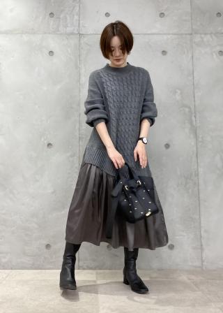 柔らかなニット×ツヤのあるスカートのドッキング。