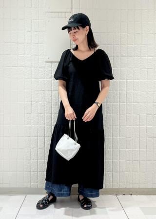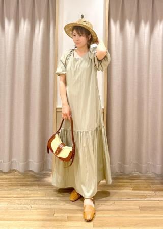 フンワリとした軽い生地で体のラインを拾うことなく涼しく着られます。袖バルーンや裾のデザインがポイントです。