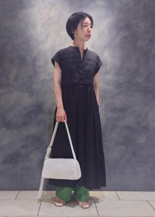 夏のワンピースとしてきていただくことはもちろん、裾ボタンをあけてパンツとのレイヤードも楽しめます。