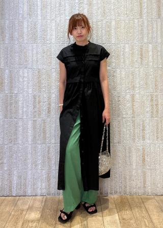 夏のワンピースとしてきていただくことはもちろん、裾ボタンをあけてパンツとのレイヤードも楽しめます。