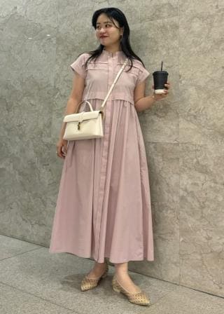【洗える】フレンチスリーブロングシャツワンピース