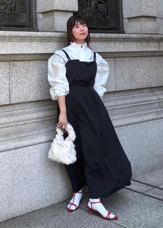 肩紐で丈感が調整できるのでどんな身長の方でも着やすいです
